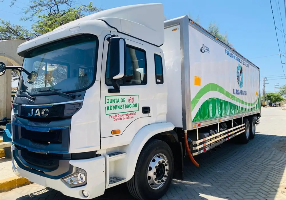 El Fondo de Desarrollo Social del Lote I hizo posible el financiamiento y la entrega de un camión isotérmico de 19 toneladas a los pescadores artesanales de La Brea (Talara), una herramienta clave que permitirá mejorar la producción, conservación y comercialización de los recursos hidrobiológicos extraídos en el mar del norte del país.
