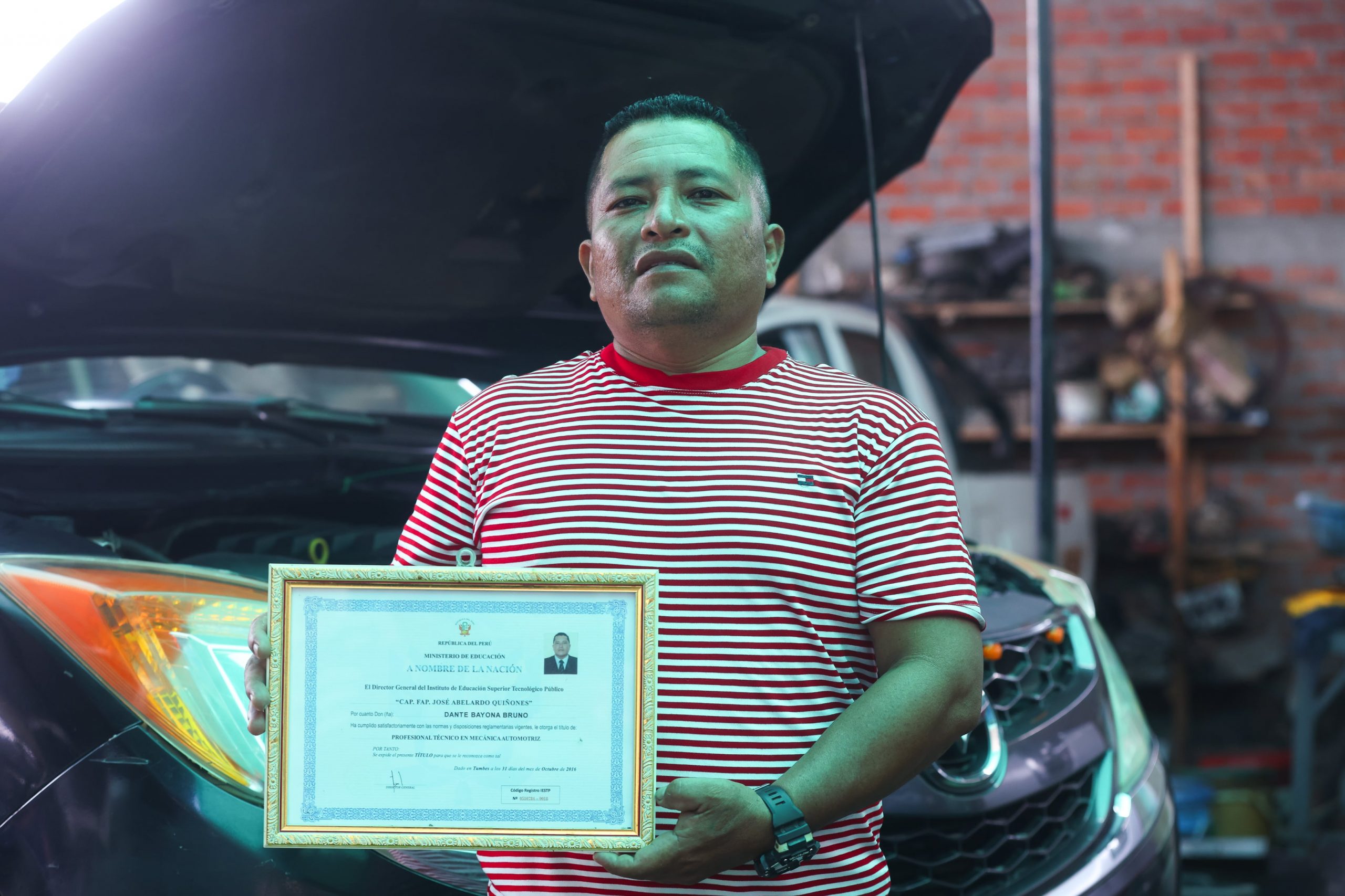 Una muestra de ello es Dante Bayona Bruno, egresado del Instituto de Educación Superior Tecnológica Público IDEX José Abelardo Quiñones, de Tumbes, quien, con esfuerzo y dedicación, culminó la carrera de Mecánica Automotriz, se especializó en motores diésel y, años más tarde, inauguró su propio laboratorio de mantenimiento de bombas e inyectores de vehículos.