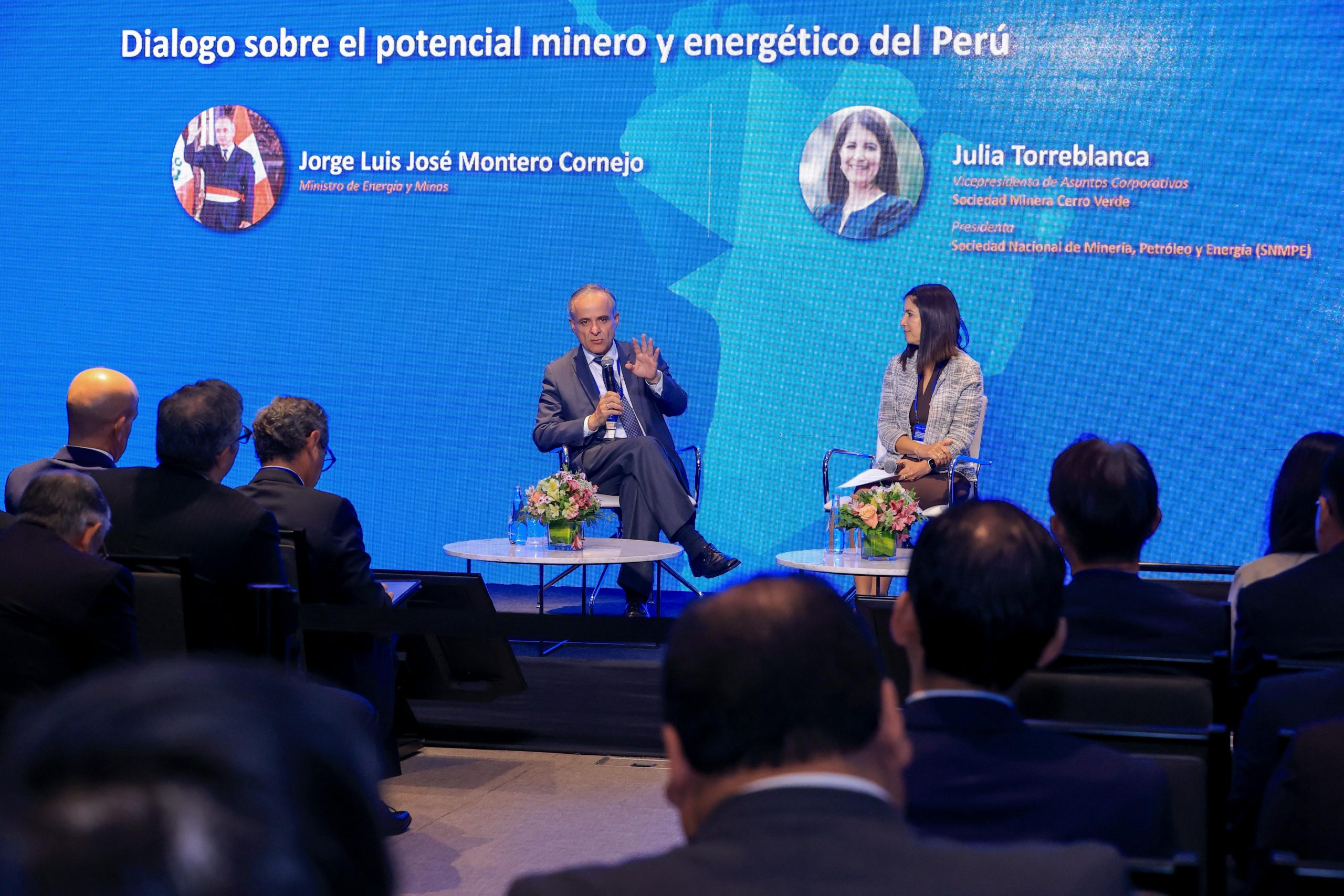 El evento permitió abordar las oportunidades de inversión que ofrece el Perú en los sectores de minería y energía, y el ministro Montero indicó que su sector trabaja para tener las mejores normas y procedimientos simplificados para tener competitividad y también sostenibilidad.