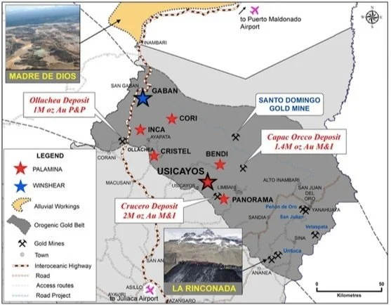 Paralelamente, Winshear Gold Corp., empresa en la cual Palamina posee un 15.4% de participación accionaria, ha iniciado un programa inaugural de perforación de 1,600 metros en la zona Coritiri de su proyecto de oro Gaban, también ubicado en el POGB. Este proyecto, anteriormente propiedad de Palamina, ahora otorga a la compañía una regalía del 2% en las ganancias netas de fundición (NSR) de todos los proyectos de Winshear.