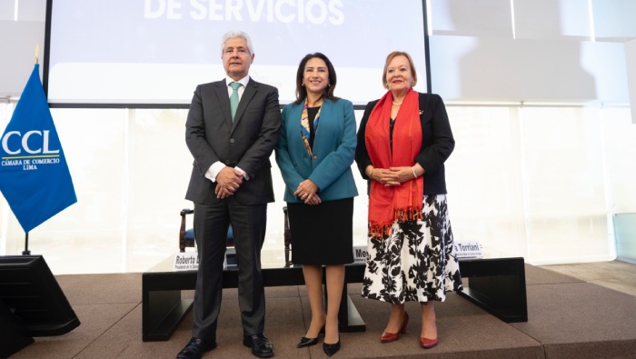El IX Foro Internacional de Servicios 2025, organizado por la Cámara de Comercio de Lima (CCL) en su sede, en el distrito de Jesús María, reunió a representantes gremiales ejecutivos vinculados a la exportación de servicios. El evento fue inaugurado por la ministra de Comercio Exterior y Turismo, en compañía del presidente de la Cámara de Comercio de Lima (CCL), Roberto De La Tore, y la presidenta del Gremio de Servicios de la CCL, Yolanda Torriani.