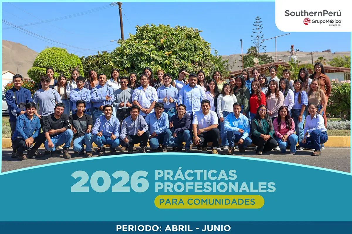 La empresa Southern Perú Copper Corporation anunció el inicio de la convocatoria para su Programa de Prácticas Profesionales para Comunidades 2026, correspondiente al periodo abril – junio, una iniciativa dirigida a egresados de los años 2024 I y II, así como 2025, provenientes tanto de institutos de educación superior —en carreras técnicas con una duración mínima de tres años— como de universidades en diversas carreras profesionales.