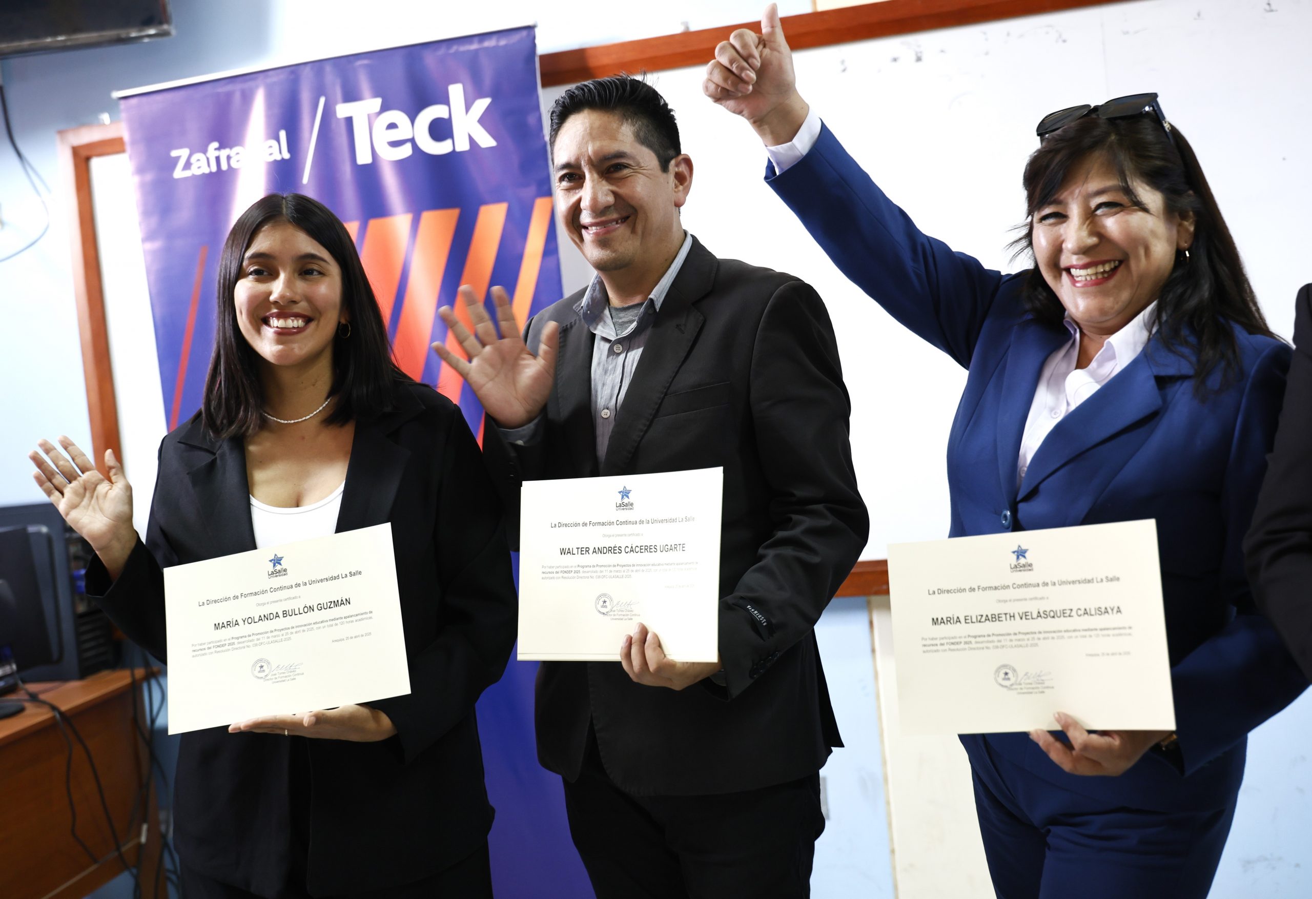Para reconocer el esfuerzo de los maestros, se realizó una ceremonia organizada por la Universidad La Salle de Arequipa y Zafranal. Participaron representantes de las instituciones educativas N.º 41502 Majes, N.º 40230 San Antonio del Pedregal y N.º 40097 República de Canadá, así como docentes del Programa de Promoción de Proyectos de Innovación Educativa de la empresa minera. Cabe destacar que, de los 28 proyectos presentados en el ámbito de la Unidad de Gestión Educativa Local La Joya, 20 fueron asesorados con el apoyo de Zafranal.
